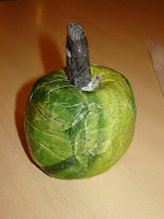 From paper mache you can make a nice fruit basket. Start with a wad of newspaper and paste newspaper strips around it . Use enough glue, so the work is so wet that you can make figures out of it. Make the last layer of toilet paper and make it smooth.