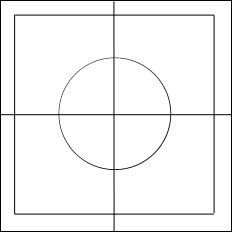 Divide the sheet in four compartments from 8 by 8 cm. Use a pair of compasses to draw a circle from the center with a radius from about 5 cm. Draw a frame from 1 cm within the outside of the sheet. Draw sunflower petals (or sunbeams!) around the circle.